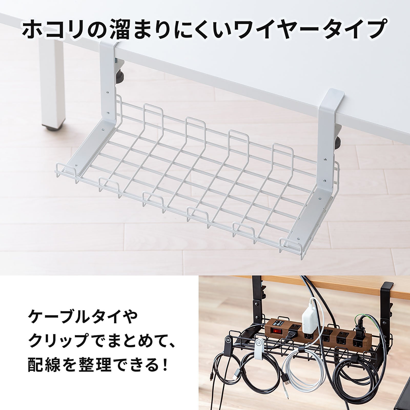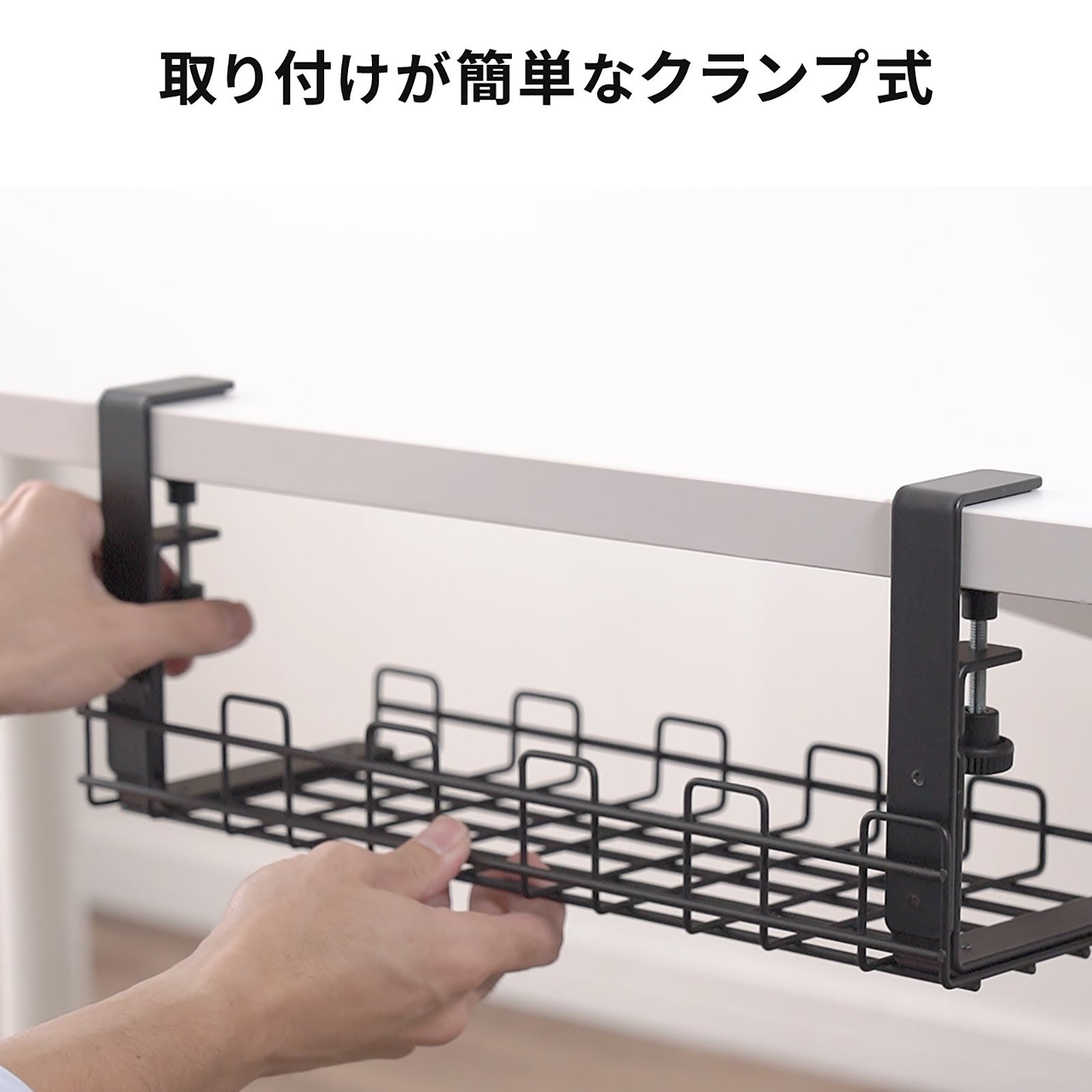 ケーブルトレー 幅40cm クランプ固定 ワイヤータイプ ケーブルオーガナイザー ケーブル収納 配線受け 電源タップ ブラック ホワイト