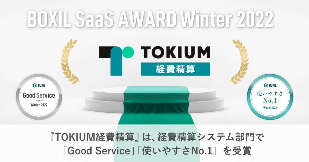 今回の「BOXIL SaaS AWARD Winter 2022」において、TOKIUM経費精算は、経費精算システム部門で高評価をいただき、「Good Service」「使いやすさNo.1」 の賞を獲得いたしました。