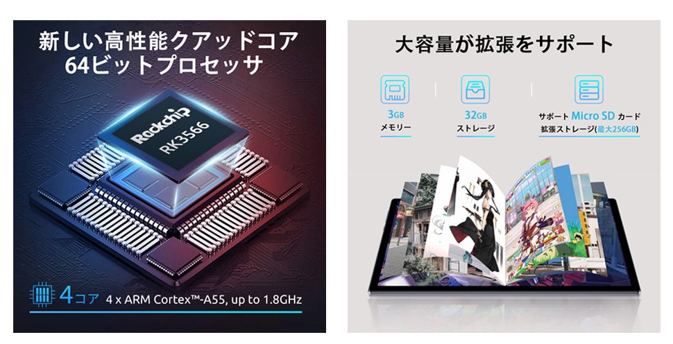 タブレット自体の32GBに加えて、Micro SDカードの拡張(最大256GB)もサポートしています。 ビデオ、音楽、オンラインクラス、インターネットアクセス、ゲームなど、さまざまなエンターテインメント、学習、および仕事のニーズを満たすことができます。 USB-Cを使用すると、充電がより簡単かつ迅速になります。
