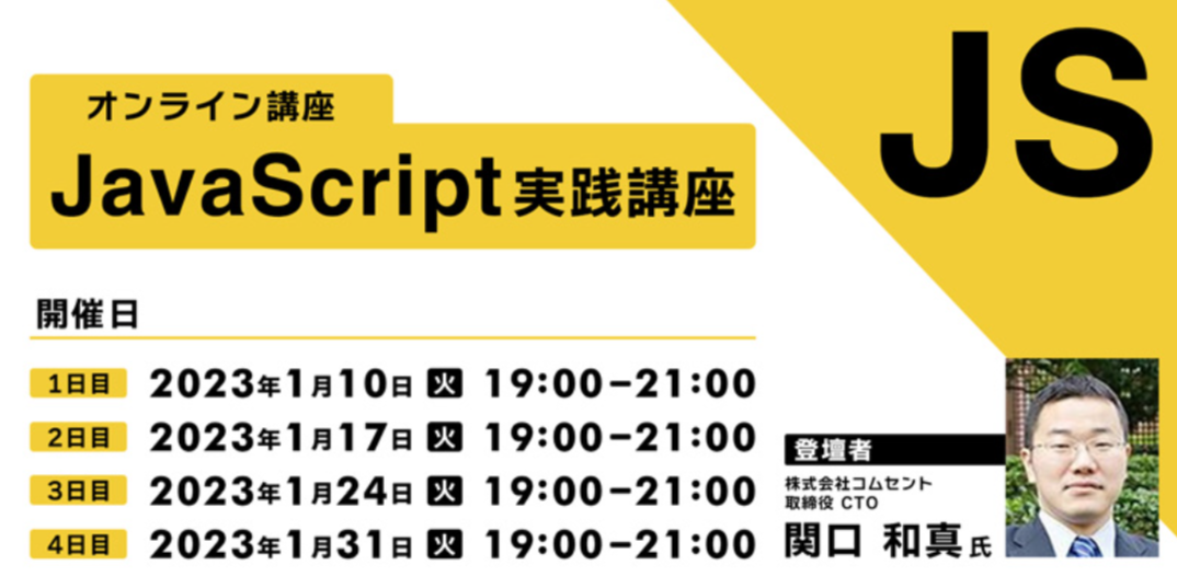 JavaScriptとは、Webサイトやシステムの開発に用いられ、ページやシステムに複雑な機能を持たせるようにすることができるプログラミング言語です。HTML/CSSをすでに習得したWebデザイナーや、フロントエンドエンジニアをめざすマークアップエンジニア・コーダーの方にとっては次に身につけておきたいスキルの一つとも言えます。C&R社では、今回、そんなJavaScriptの実践的な知識とスキルを全4回でみっちりと学べるオンライン講座を企画いたしました。