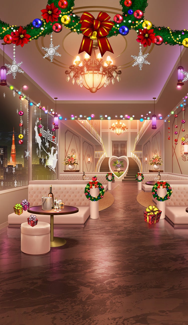 ★12⽉15⽇(木)から開催する『club恋下クリスマスミッション』はclub恋下営業中に、メッセージで「好き」と彼に送ろう♪いつもより沢山愛の言葉を伝えて、クリスマス限定、特別なSSRセレブルビードレスをゲットして彼とのクリスマスデートに備えよう♡
