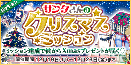 ★12⽉19⽇(⽉)からは『サンタさんのクリスマスミッション』と『Merry Xmasミッション』の豪華W開催!!