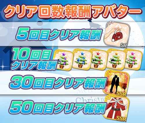 クリア回数に応じて「【SSR】真っ赤なサンタローブ」等、限定豪華報酬をゲットしちゃおう♡
