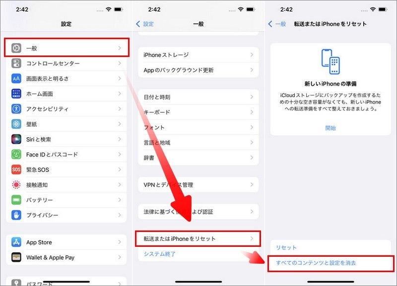 2つ目はiPhone/iPadの設定から初期化する方法です。やり方は以下の通りです。