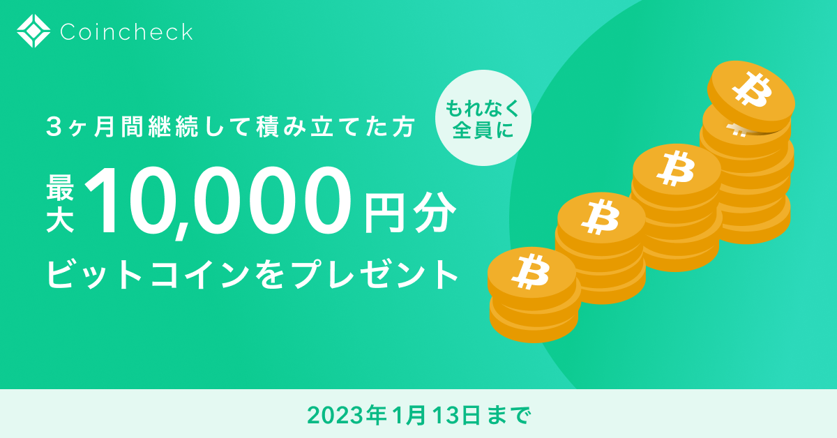 2022年12月12日から2023年1月13日までの間にCoincheckつみたてを申し込み、2023年2月7日から3ヶ月間継続して買付を行なったお客様