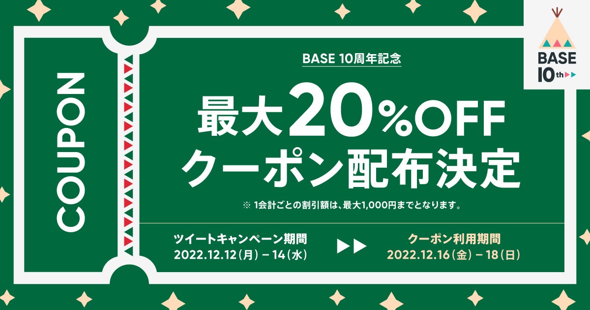 「BASE」をご利用のショップの皆様が年末商戦に活用できるツイートキャンペーンを12月12日(月)12時00分より開始いたします。