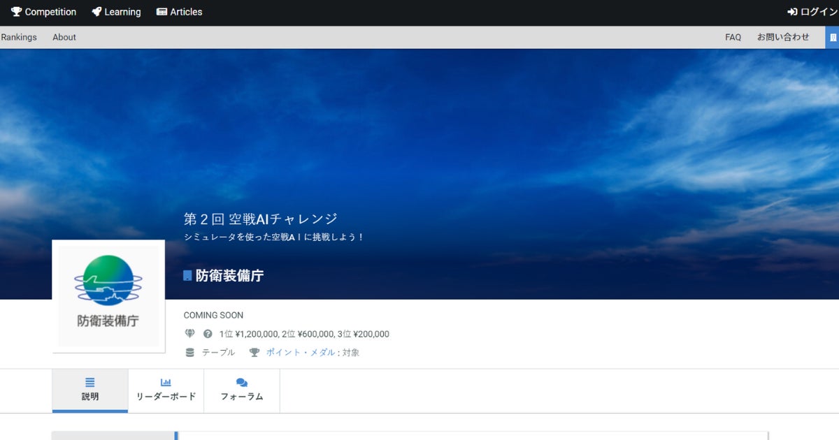 名称 :第2回 空戦AIチャレンジ~シミュレータを使った空戦AIに挑戦しよう!~