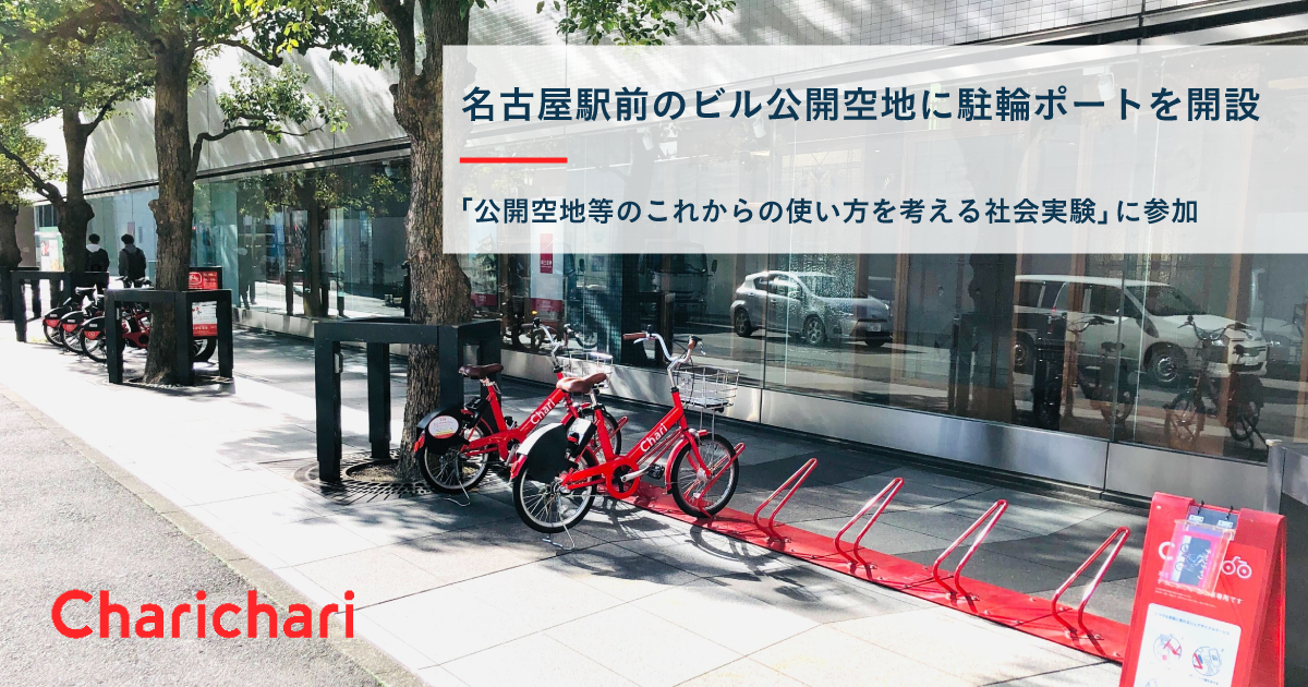 今回、社会実験に参加するトヨタ不動産株式会社(本社:名古屋市中村区、取締役社長:山村知秀、以下「トヨタ不動産」)と連携し、トヨタ不動産が所有または管理する名古屋駅前のビル公開空地に、同じく名古屋市内を中心にシェアサイクルサービス「カリテコバイク」を展開している名鉄協商株式会社(本社:名古屋市中村区、代表取締役社⾧:小林 昌弘)と共同でシェアサイクルポートを開設しました