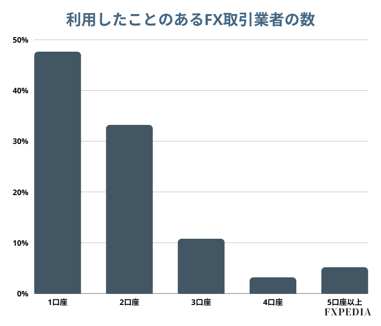 ●利用したことのあるFX取引業者の数は「1社」で47.6%