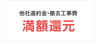 他社違約金、撤去費用などを最大10万円までキャッシュバックします。
