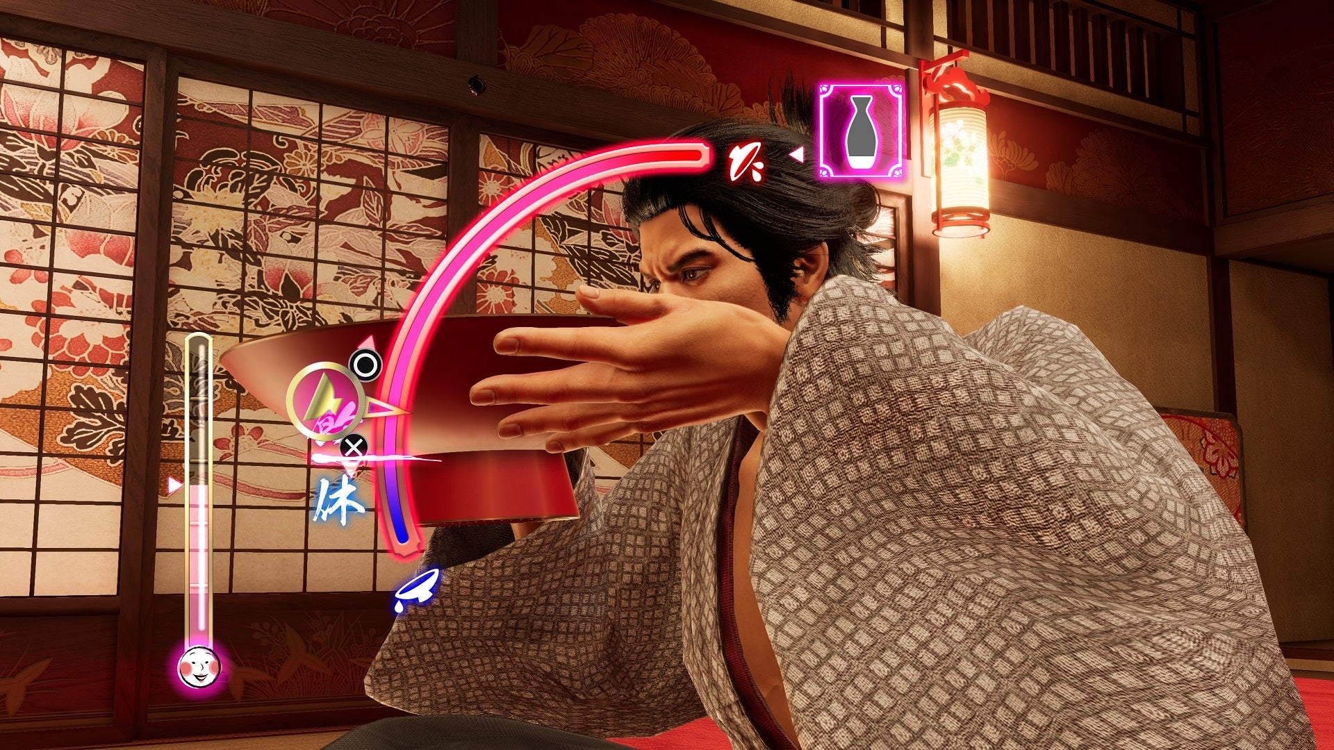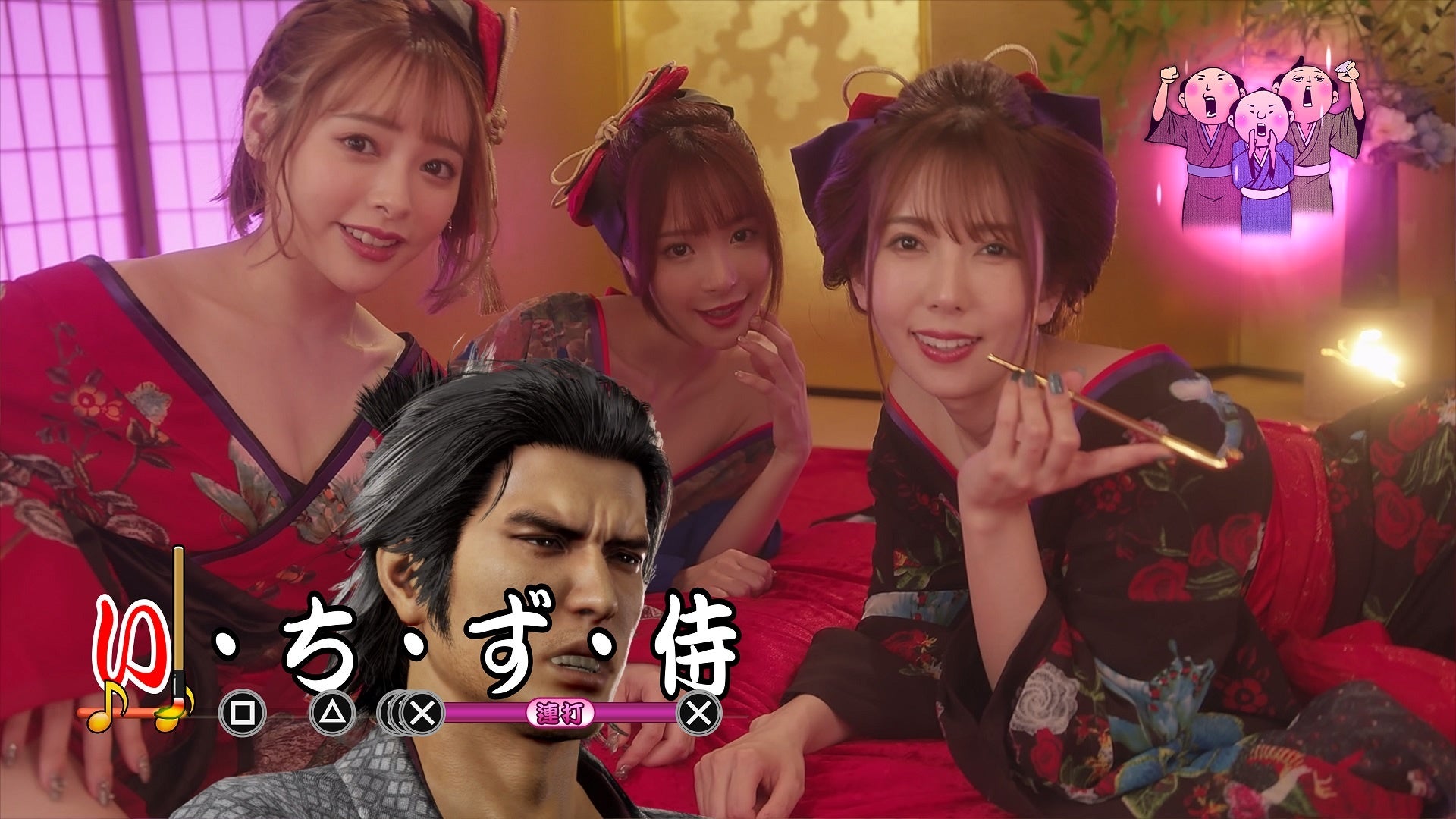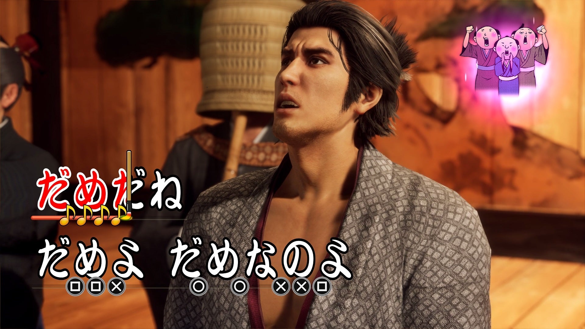 楽曲に合わせてボタンを押す、リズムアクションのカラオケが楽しめる「歌声酒場」には、『龍が如く』シリーズでもおなじみの『ばかみたい』の幕末アレンジと、『い・ち・ず・侍』の2曲が新登場します。
