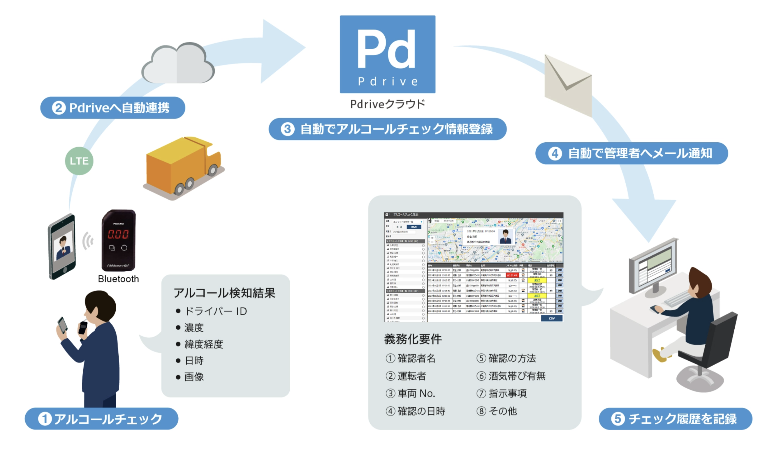 ※アルコールチェック記録サービスの利用には、「Pdriveサービス」の契約が必要となります。