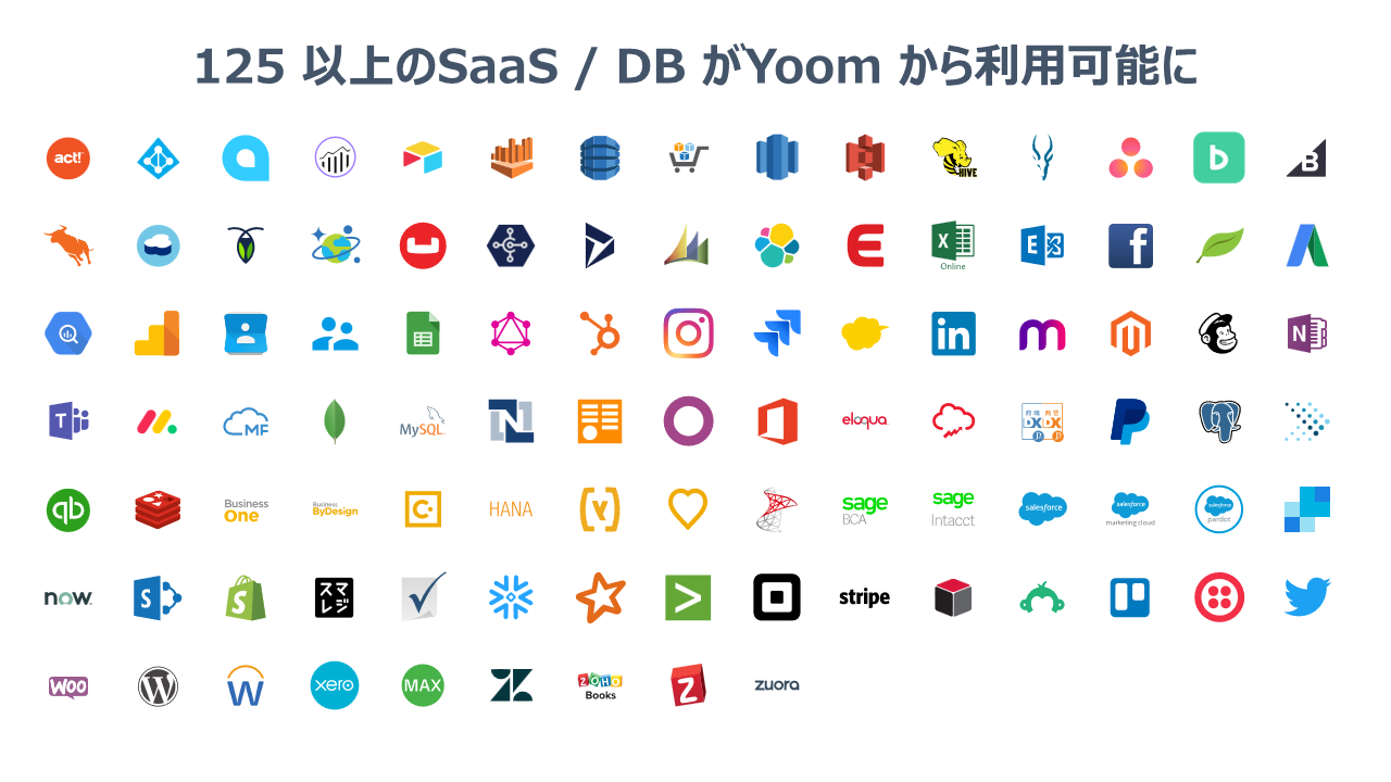 これまでYoomが連携を強化してきたパッケージ型のSaaSツールに加えて、CData Connect Cloud を通じて125種類以上のデータソースに接続できるようになります。
