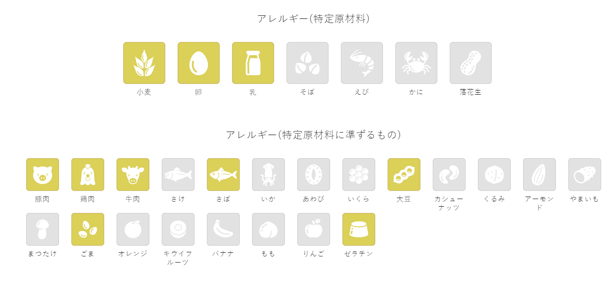 また、お客様の抱えるアレルギーの問題に対しても、原材料が一目でわかるデザインが採用されており、安心してメニューを選ぶことができます。