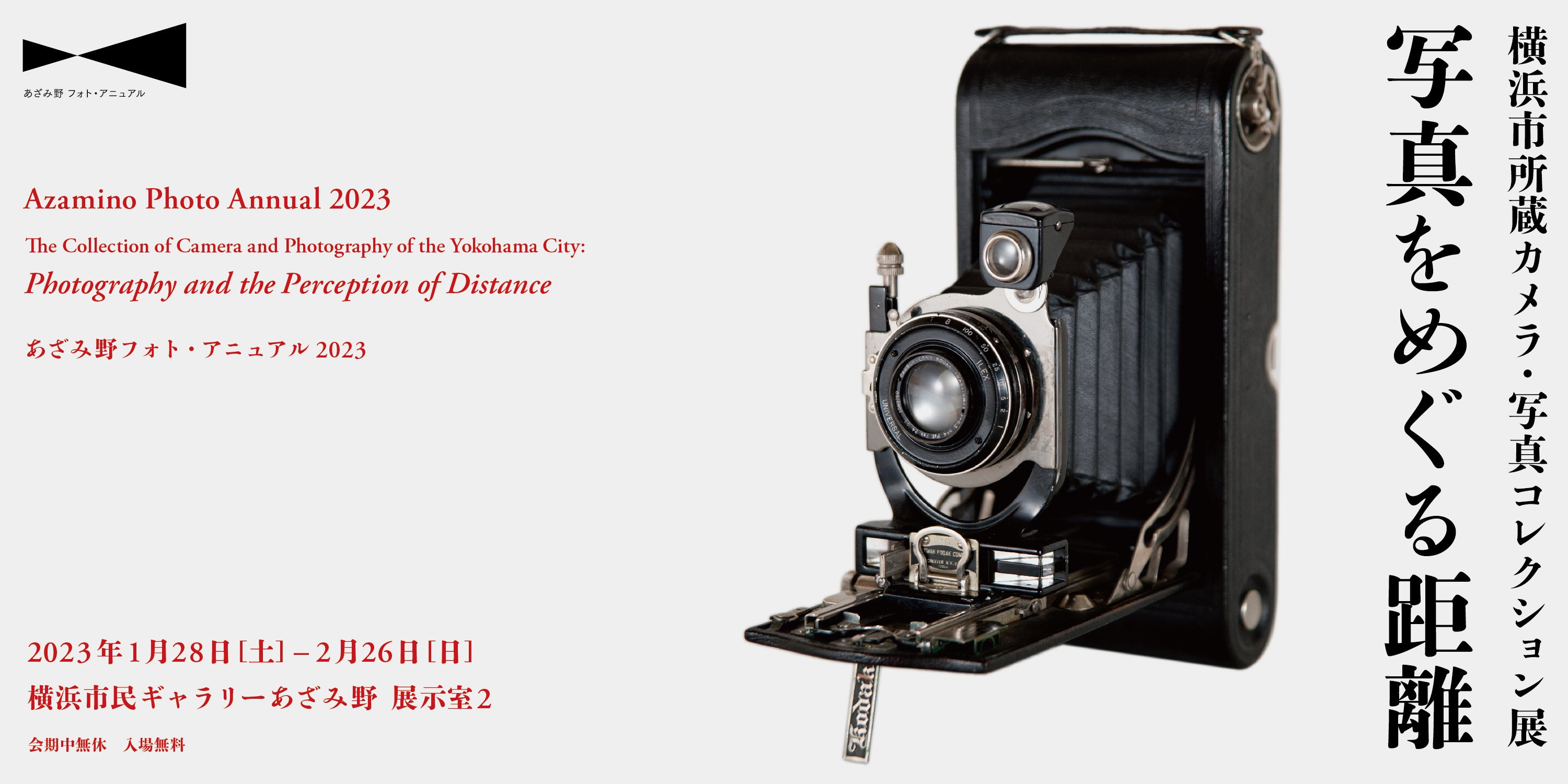 今年度の「あざみ野フォト・アニュアル2023」は、2023年1月28日(土)~2月26日(日)に開催。現代の写真表現を紹介する企画展では「潮田登久子 写真展 永遠のレッスン」と題し、写真家 潮田登久子(うしおだ・とくこ)の個展を開催します。また「横浜市所蔵カメラ・写真コレクション展 写真をめぐる距離」では、写真にまつわる様々な「距離」をキーワードに、写真技術の発展と写真表現の関係を探ります。