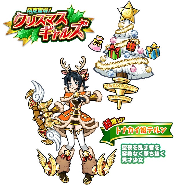 聖なる夜にふさわしい期間限定レアガチャ「クリスマスギャルズ」に、新たなる超激レアキャラクター「トナカイ娘テルン」が参戦します。
