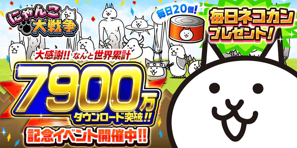 ・イベント開催期間中に「にゃんこ大戦争」アプリを起動すれば、毎日ネコカン20個プレゼント!