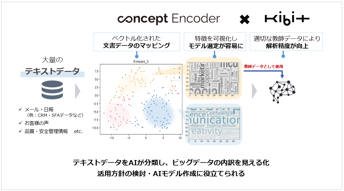 教師データのモデル作成にかかる作業負荷の軽減と作業効率・精度の向上が達成されたことに加え、AIがデータを客観的かつ網羅的に解析することで、顧客自身が気づいていなかったデータクラスタの提示や、クラスタリング精度の標準化などの効果も確認されました。