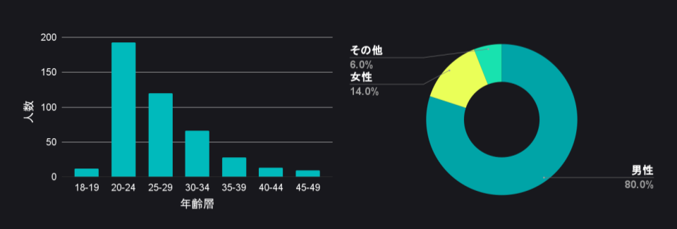 属性については昨年と大きく変わらず、合格者の属性は男性が8割、年齢分布は20~24歳が最も多く、次いで25~29歳が多い結果となりました。