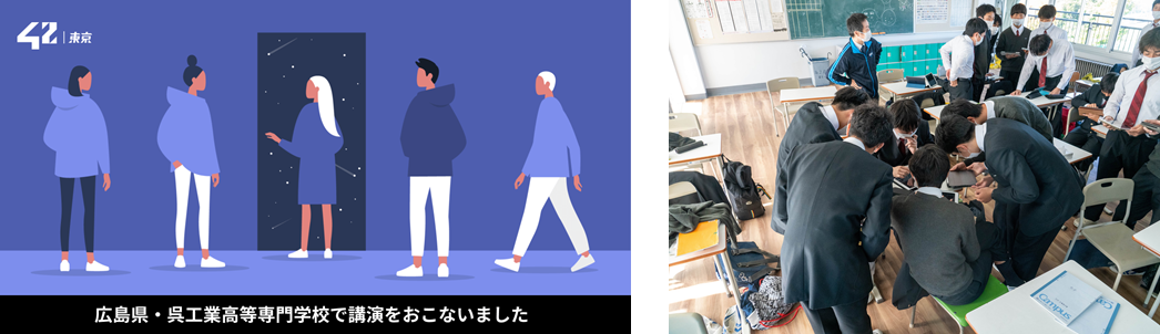 Piscineや入学後の学習のオンライン化により、首都圏以外の学生も参加可能になりました。首都圏外の学生にも新たな学習の選択肢として42 Tokyoがあることを知ってもらうため、広島県の呉工業高等専門学校、静岡聖光学院、三重県立松阪高等学校の3校の学校で講演活動を実施しました。