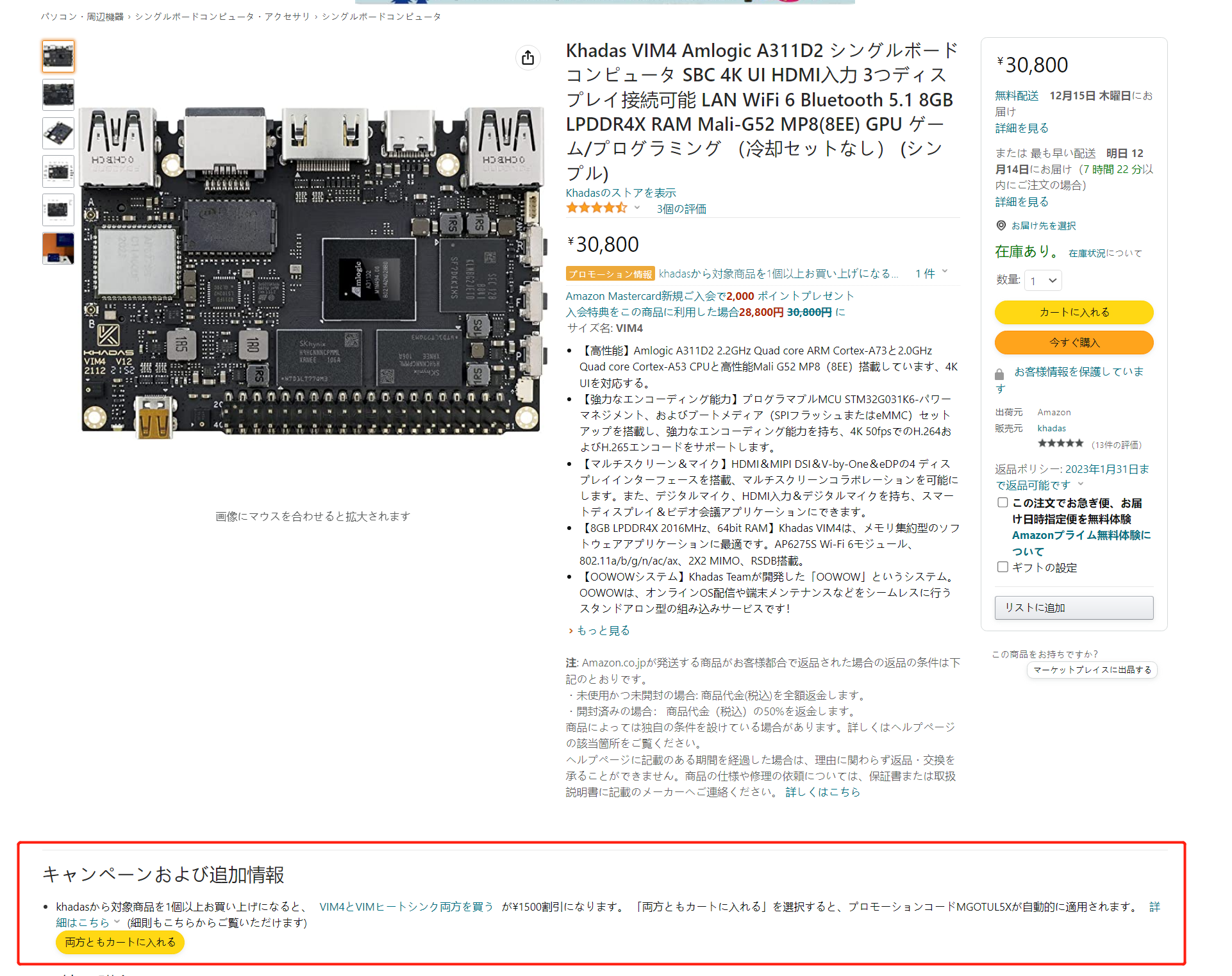 「日本アマゾン特売」VIM4とVIMヒートシンク両方を買うが¥1500割引になります。
