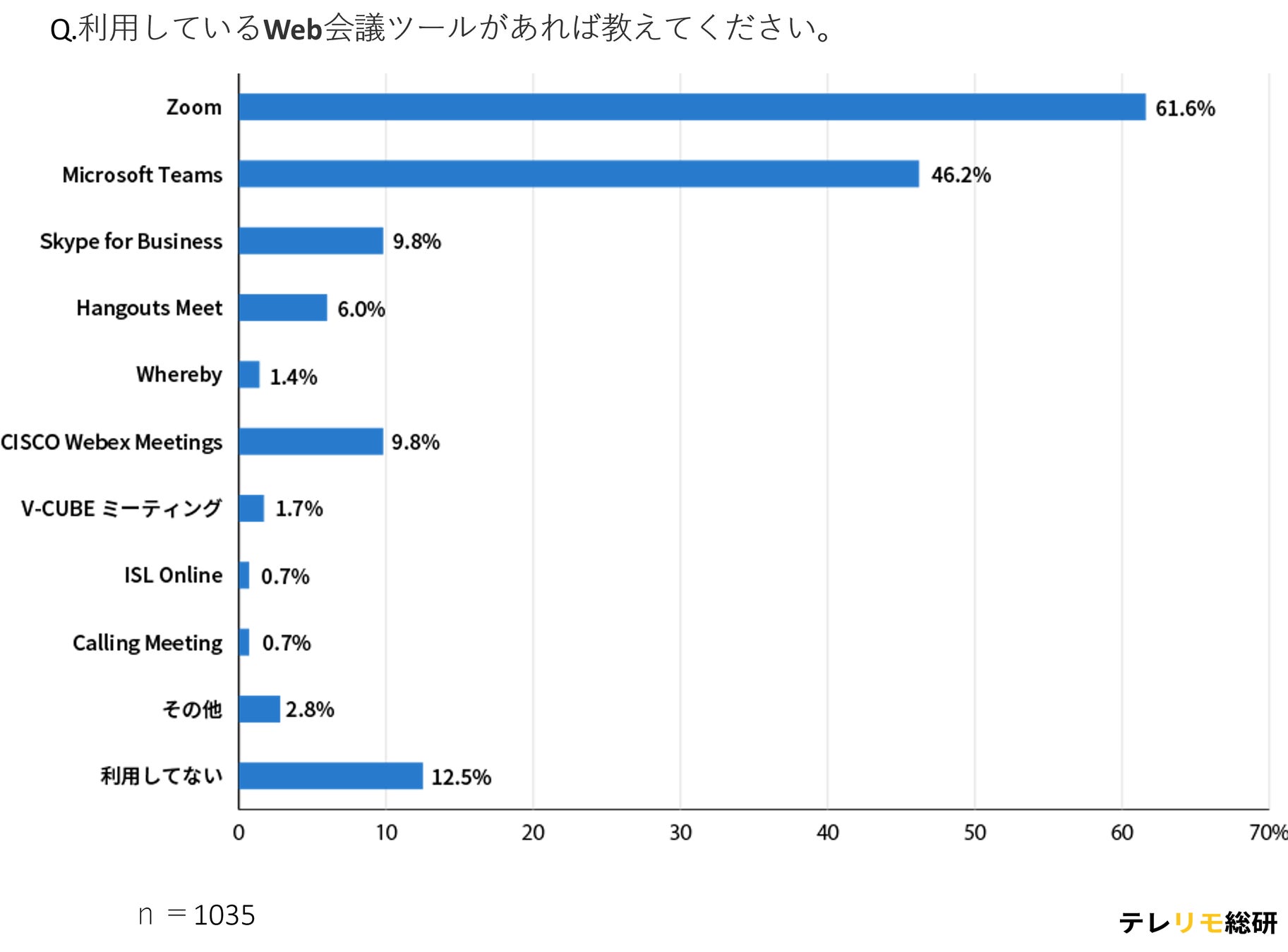 今回はそういった悩み事への参考も兼ねてWeb会議ツールのシェア率と、上位のシェアを占めるツールの特徴について調査しました。