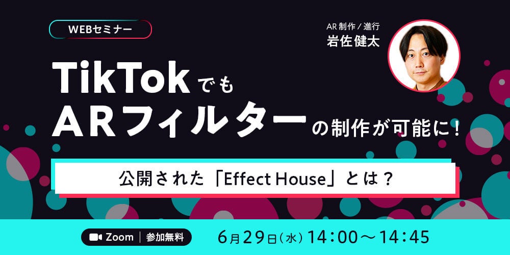 本セミナーでは、今回提供が開始された「Effect Houseとは何か」、「Effect Houseでできること」を中心に、アララで実際にTikTok ARフィルターを作成してみた際の効果をご紹介します。