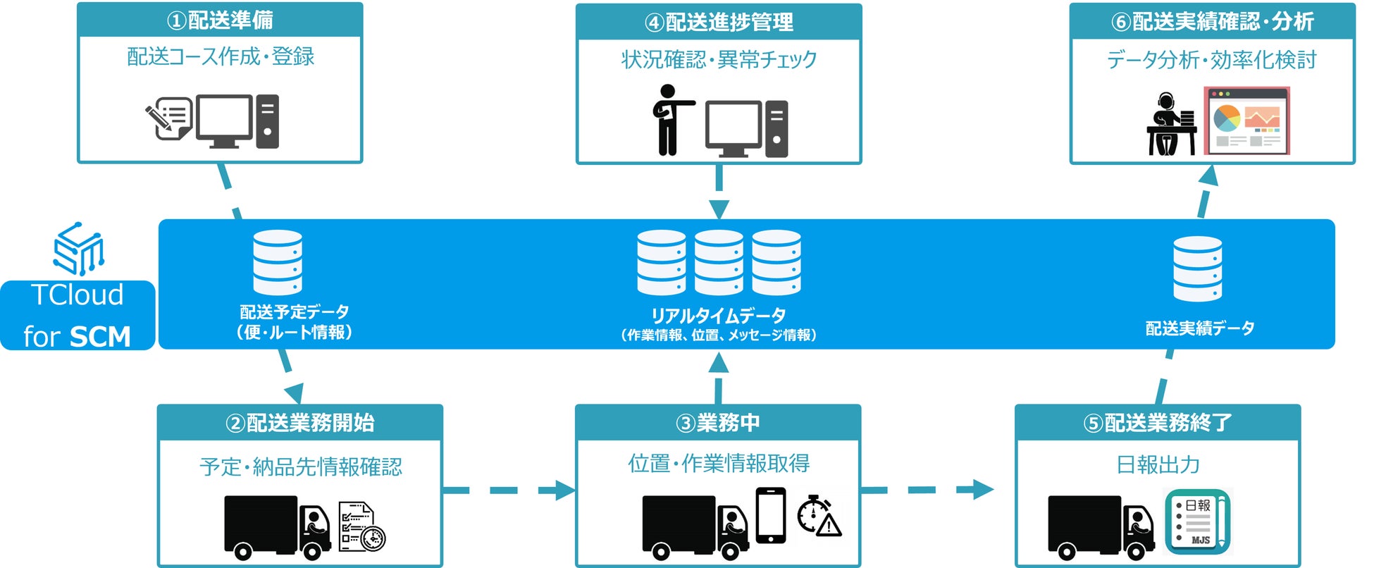 「TCloud for SCM」はサプライチェーン・ロジスティクス領域における様々な業務データを収集、可視化、分析するサービスであり、データの力でお客様を取り巻く社会課題の解決を支援します。