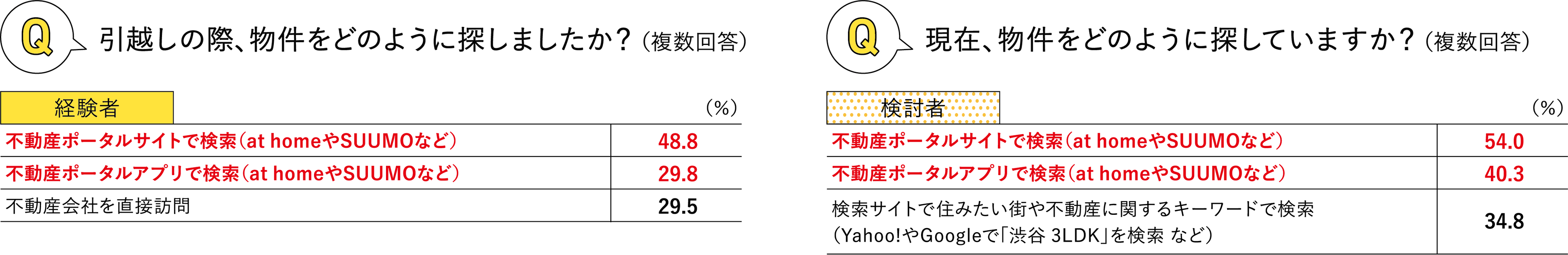 ・経験者・検討者ともに「不動産ポータルサイトで検索」がトップ