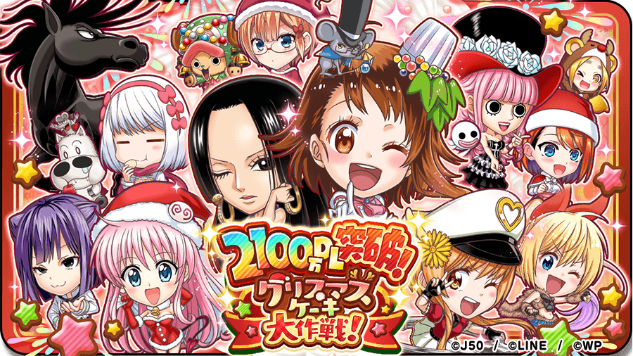 「ジャンプチ ヒーローズ」では、全世界2,100万ダウンロードを突破したことを記念し、本日より新イベント「2100万DL突破!クリスマスケーキ大作戦!」を開催いたします。