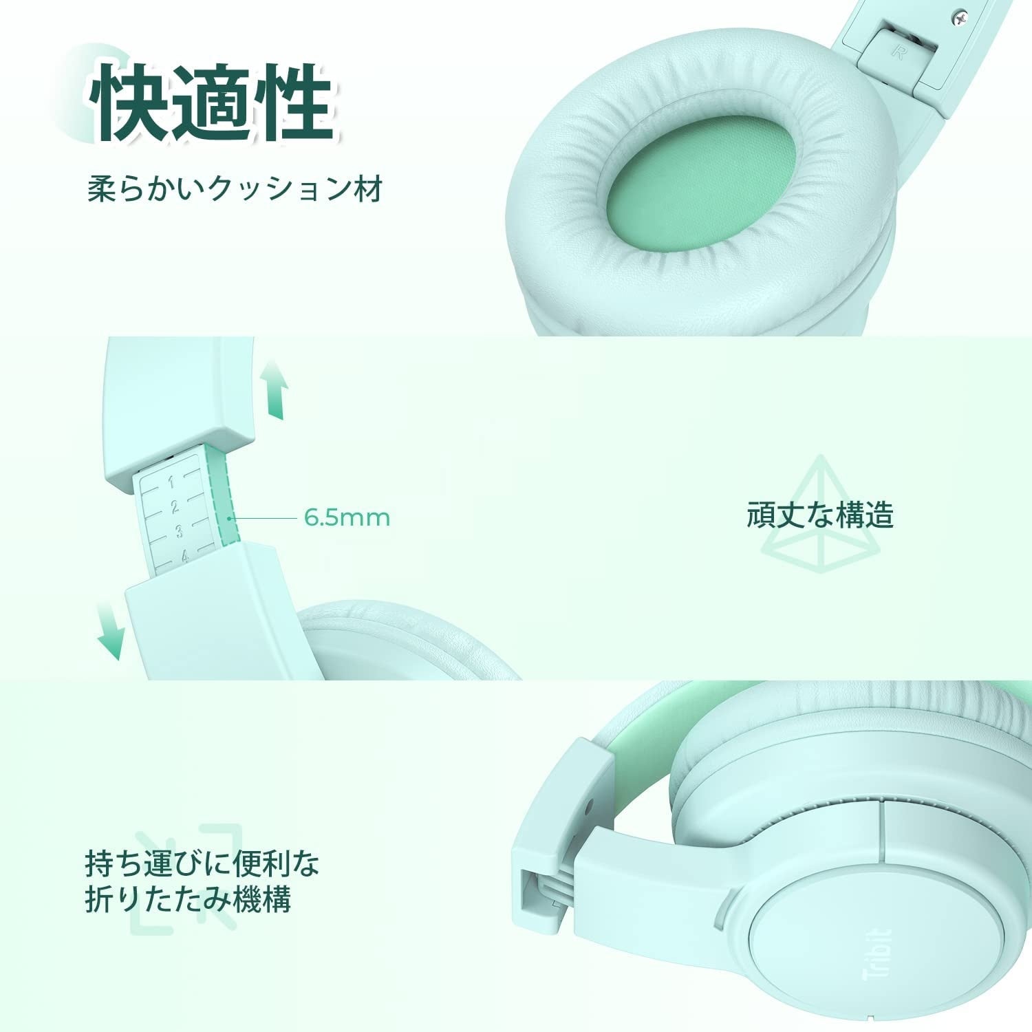 人間工学に基づいて設計されたイヤーパッドは肌触りの良いクッション材を採用し、柔軟性と通気性が良く、耳への圧迫感やべたつきなどの不快感から解放してくれます。伸縮可能で上質なヘッドバンドで自由に大きさが調節でき、お子様の耳に優しくぴったりフィットします。