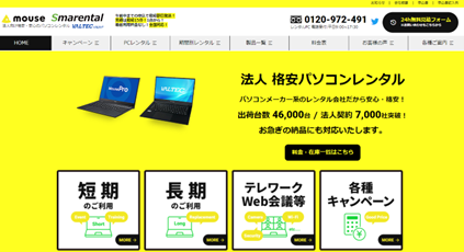「スマレンタル」はPBパソコンを製造販売するバルテックグループで、リース、レンタル事業を行うスマートレンダー株式会社が運営する法人パソコンのレンタルサイトです。