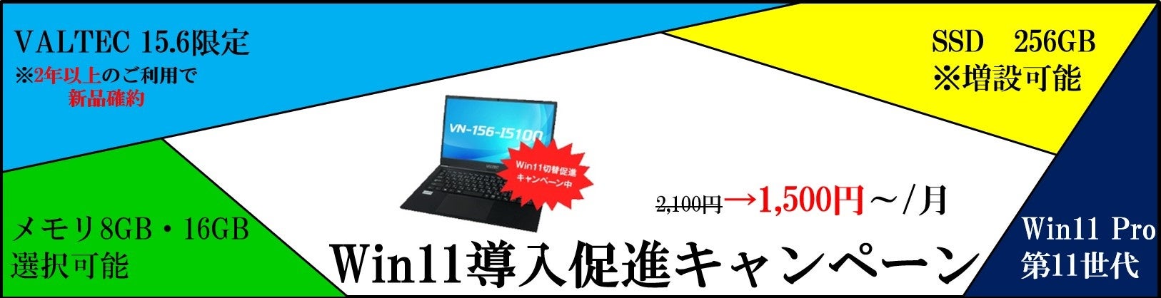 Windows10のサポート終了に備え、Windows11の導入を推進するお得なキャンペーンを開始します。2年以上の長期にわたりご利用いただくお客様を対象に、特別価格でのレンタルを実施。在庫がなくなり次第終了のため、お早めにお問い合わせください。