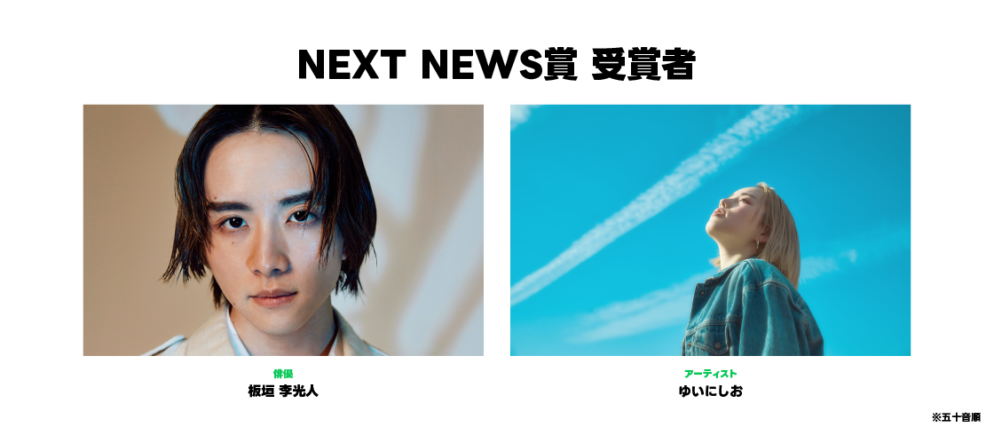 - “来年NEWSになりそうな人”を表彰する「NEXT NEWS賞」は、板垣李光人さんとゆいにしおさんが受賞!