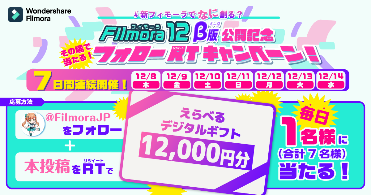 Filmora(フィモーラ)公式Twitterにて期間中『毎日』実施中