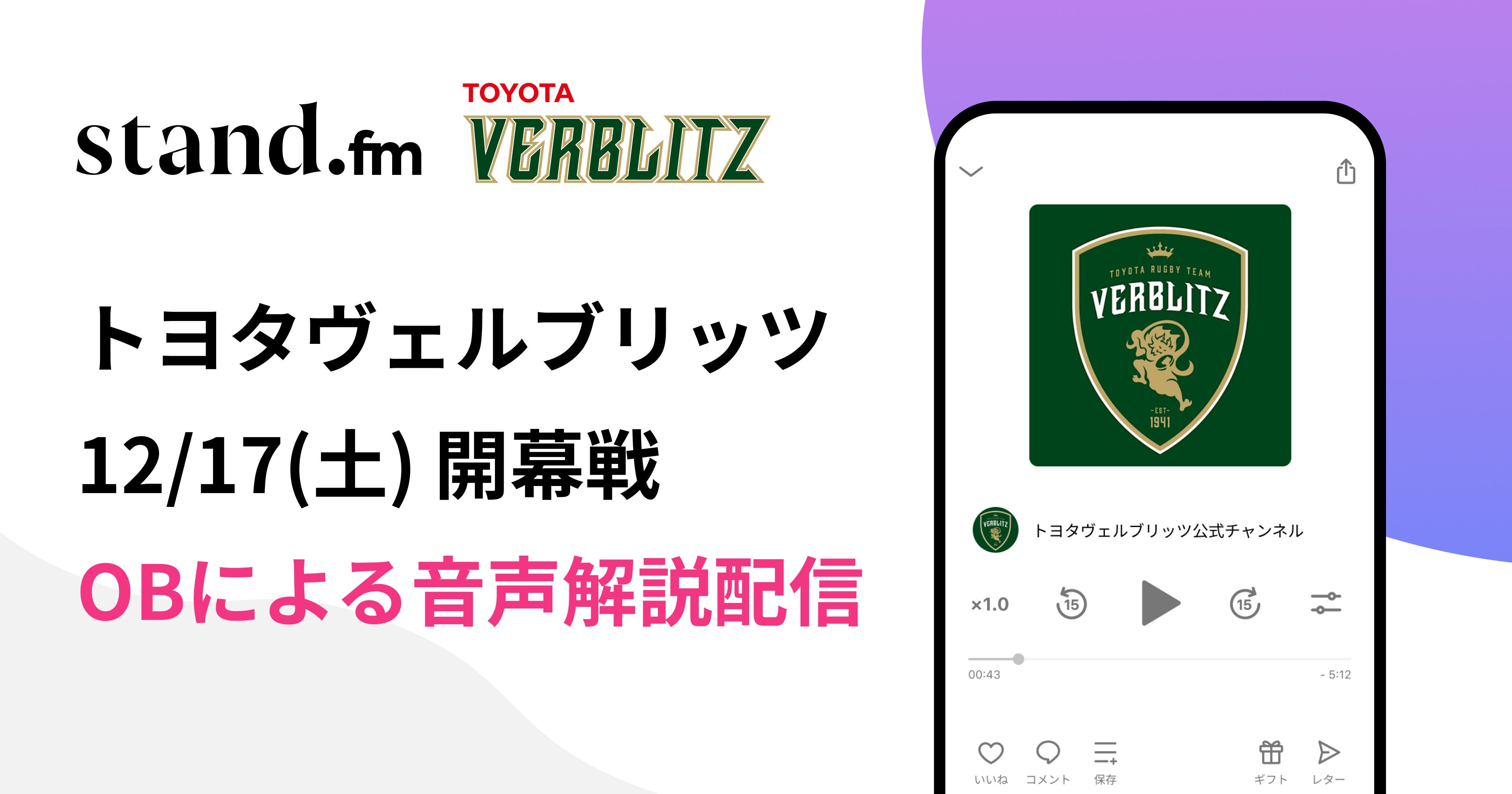 いよいよ12月17日(土)に新シーズンの開幕が迫った「JAPAN RUGBY LEAGUE ONE(ジャパンラグビー リーグワン)」に向けて、「トヨタヴェルブリッツ公式チャンネル」がstand.fmで開設されました。