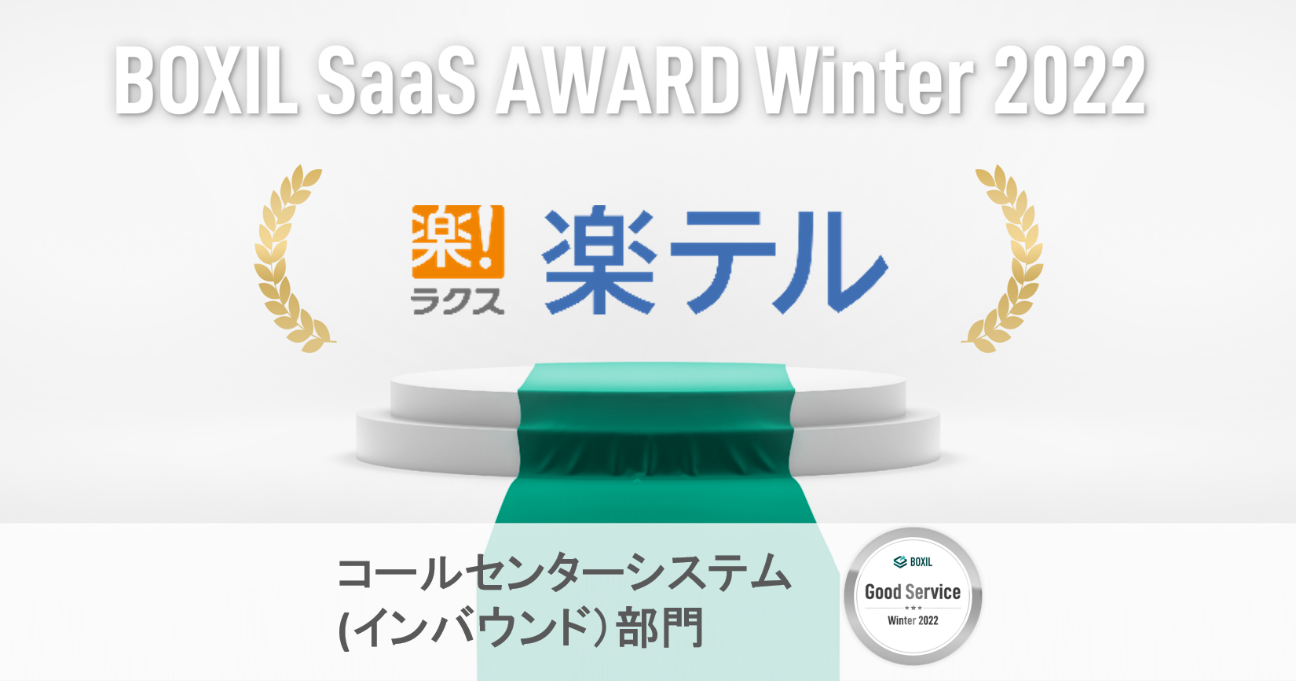 「BOXIL SaaS AWARD(ボクシル サース アワード)」は、スマートキャンプが運営するSaaS比較サイト「BOXILSaaS(ボクシル サース)」が、優れたSaaSを審査、選考、表彰するイベントです。今回の「BOXIL SaaS AWARD Winter 2022」は、2021年10月1日から2022年9月30日までの1年間で新たに投稿された口コミ約10,000件を審査対象としており、「楽テル」は「コールセンターシステム(インバウンド)部門」で「Good Service」に選ばれました。また、その証となる「Good Serviceバッジ」が、スマートキャンプから付与されました。