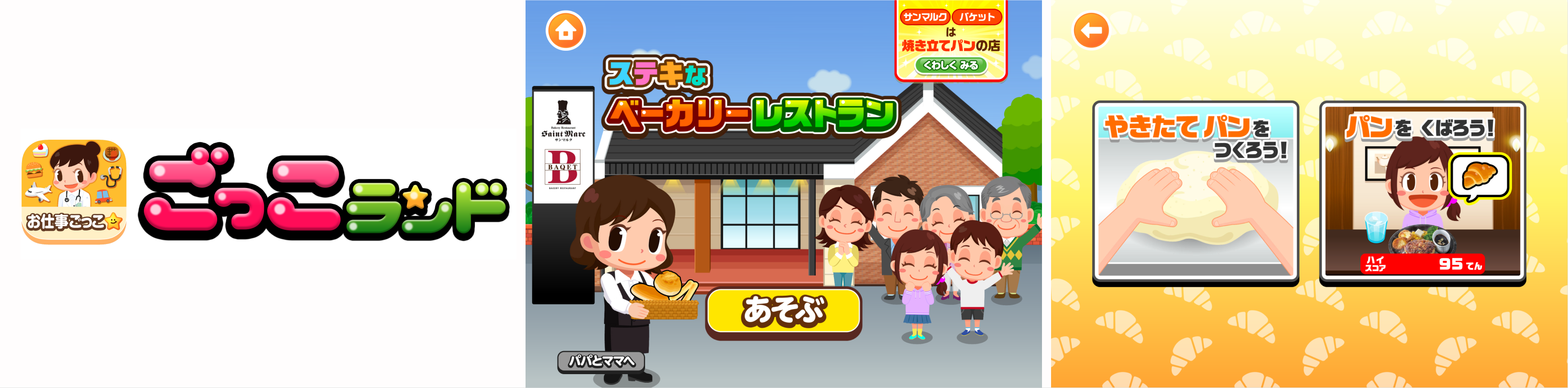 本ゲームを協賛するサンマルクホールディングスは、こだわりの焼き立てパンと様々なシーンに合わせて楽しめる料理を提供している「ベーカリーレストランサンマルク」や、自分で選べるパン食べ放題とカジュアルフレンチ料理をご用意した「バケット」を運営しています。本ゲームを通して、子どもたちに「ベーカリーレストランサンマルク」や「バケット」をより身近に感じていただきたいという想いから、『ごっこランド』への出店が実現しました。