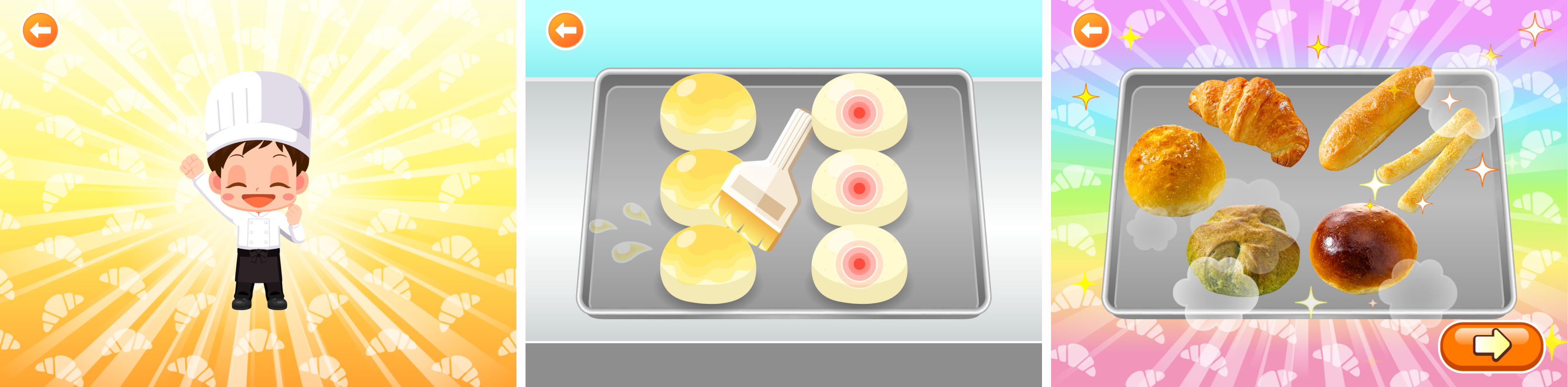 「ステキなベーカリーレストラン」は、「やきたてパンをつくろう!」と「パンをくばろう!」で構成され、パンの魅力を楽しく学ぶとともに、ベーカリーレストランに親しみを持っていただけるゲームです。