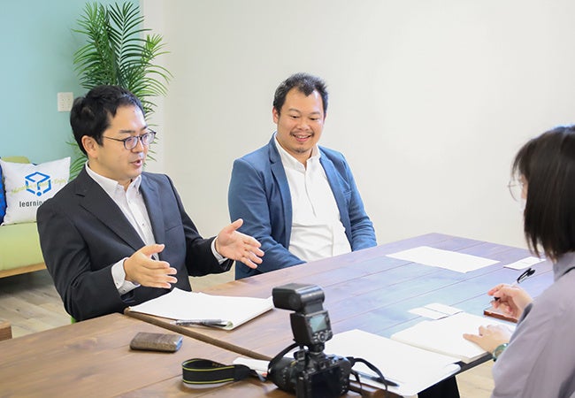 先日、弊社代表取締役社長の西村洋一郎(写真左)、learningBOXプロダクトオーナー・取締役の森和宏(写真右)が神戸新聞のインタビュー取材を受け、会社の歩みや製品「QuizGenerator」「learningBOX」の特長、今後の展望などについてお話しさせていただきました。その内容が12月15日付・神戸新聞朝刊ならびにWeb版の神戸新聞NEXTに掲載されました。