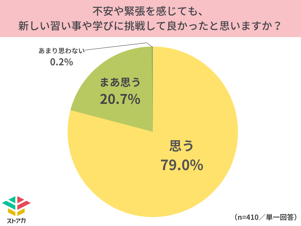 (1)新しい習い事や学びをはじめるとき、緊張や不安を感じるのは約8割。それでも挑戦してよかったと思う人はほぼ10割!大人になっても新しいことは不安に感じる。それでも挑戦する価値アリ!