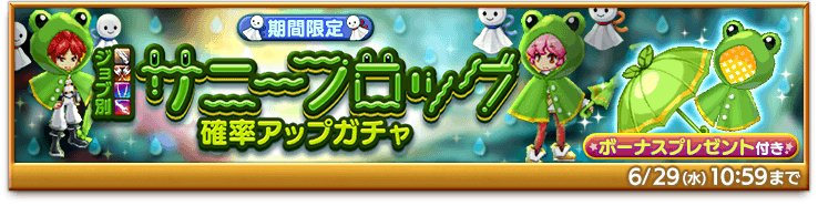 期間中、「ジョブ別 サニーフロッグ確率アップガチャ」を販売します。