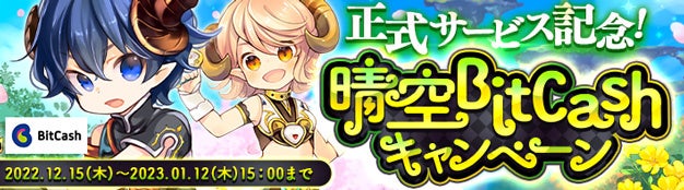 正式サービス開始を記念して、ビットキャッシュまたは会員サービスのマイビットキャッシュにて一定額以上のGコインをご購入いただくと、抽選で最大10,475円のビットキャッシュが当たります。また、一定額以上のGコイン購入でもれなく全員にアイテムプレゼントや、公式ツイッターをフォローして参加された方に抽選で最大10,475円分のビットキャッシュが当たるリツイートキャンペーンも開催中です。