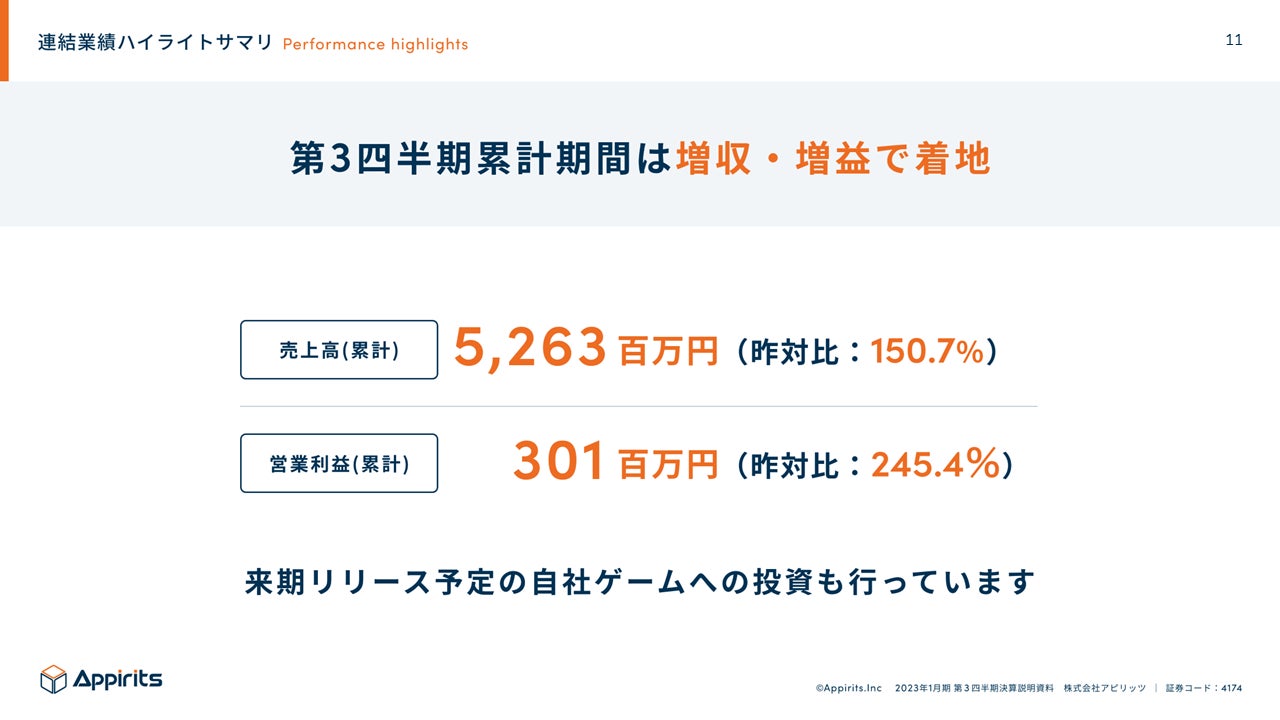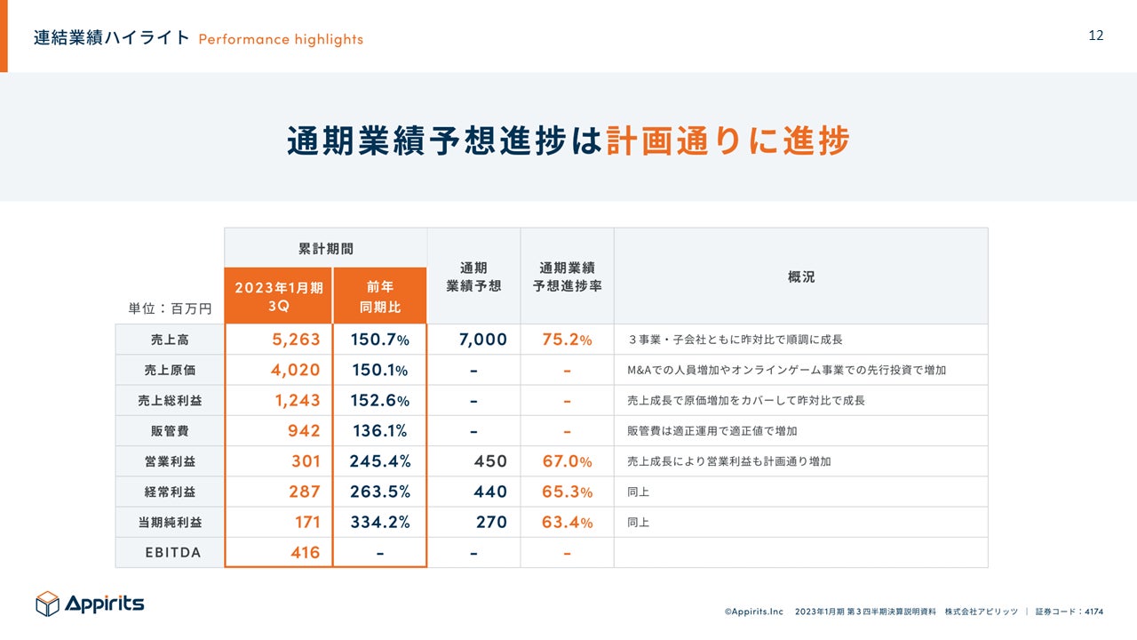 - 2023年1月期 第3四半期 業績ハイライト(決算説明資料一部抜粋)