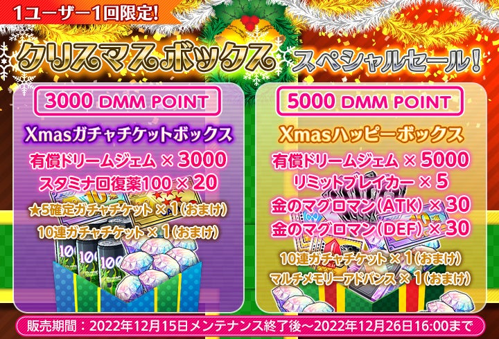 2022年12月15日(木)メンテナンス後~12月22日(木)12時まで