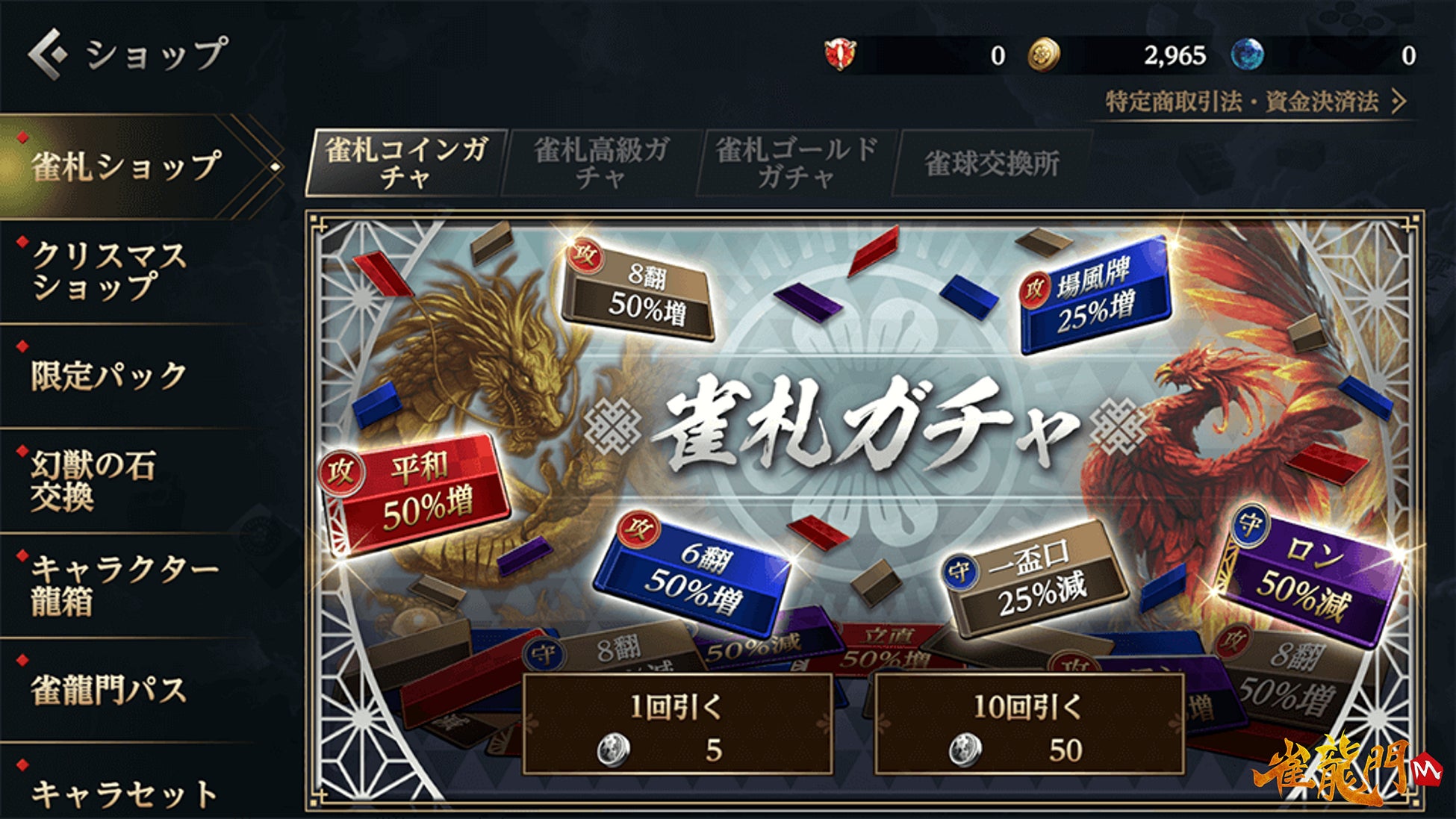「雀札」が獲得できるガチャや、「雀札戦」で獲得したアイテムと限定アイテムが交換できる「交換所」など、ラインナップが目白押しです!
