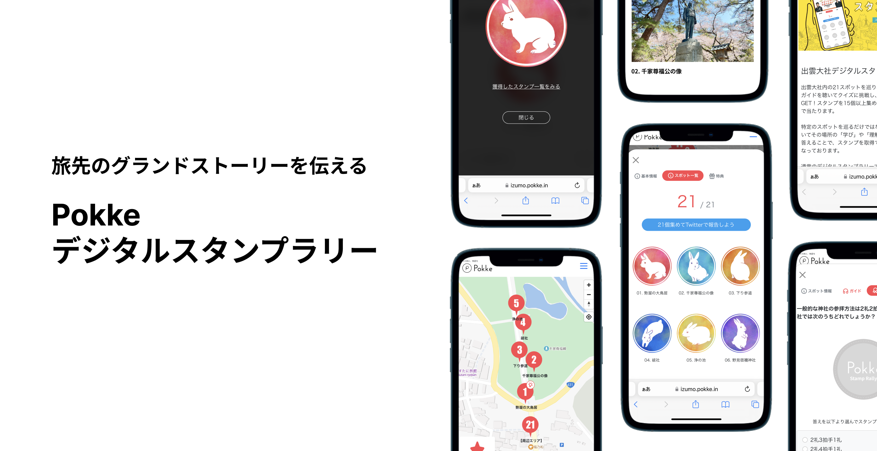 観光DXソリューション「Pokke」の「デジタルスタンプラリー」は、地域や施設の周遊促進や、思いがけない発見の提供をテーマにしており、ただ、特定の場所を巡るだけではなく、「旅先で見つけるグランドストーリー(歴史・伝統・文化・食・建築・人物等)」を一層体験的に味わうことができます。観光地の自治体や施設は「Pokke」を通して情報を発信することで観光客に深く理解してもらうことができ、ファン化・リピーター化を促すことができます。
