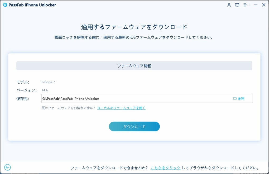 Step2:iPhone/iPadをパソコンに接続するとファームウェアの検出が始まりますので、「ダウンロード」をクリックします。