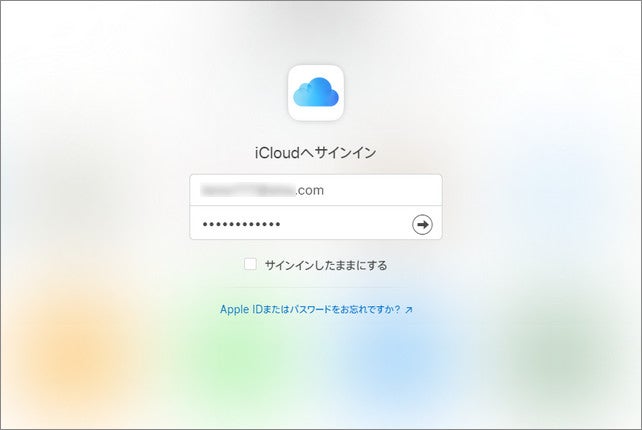 Step1:パソコンや他のデバイスなどのブラウザからiCloudサイトにアクセスし、Apple IDとパスワードを入力してサインインします。