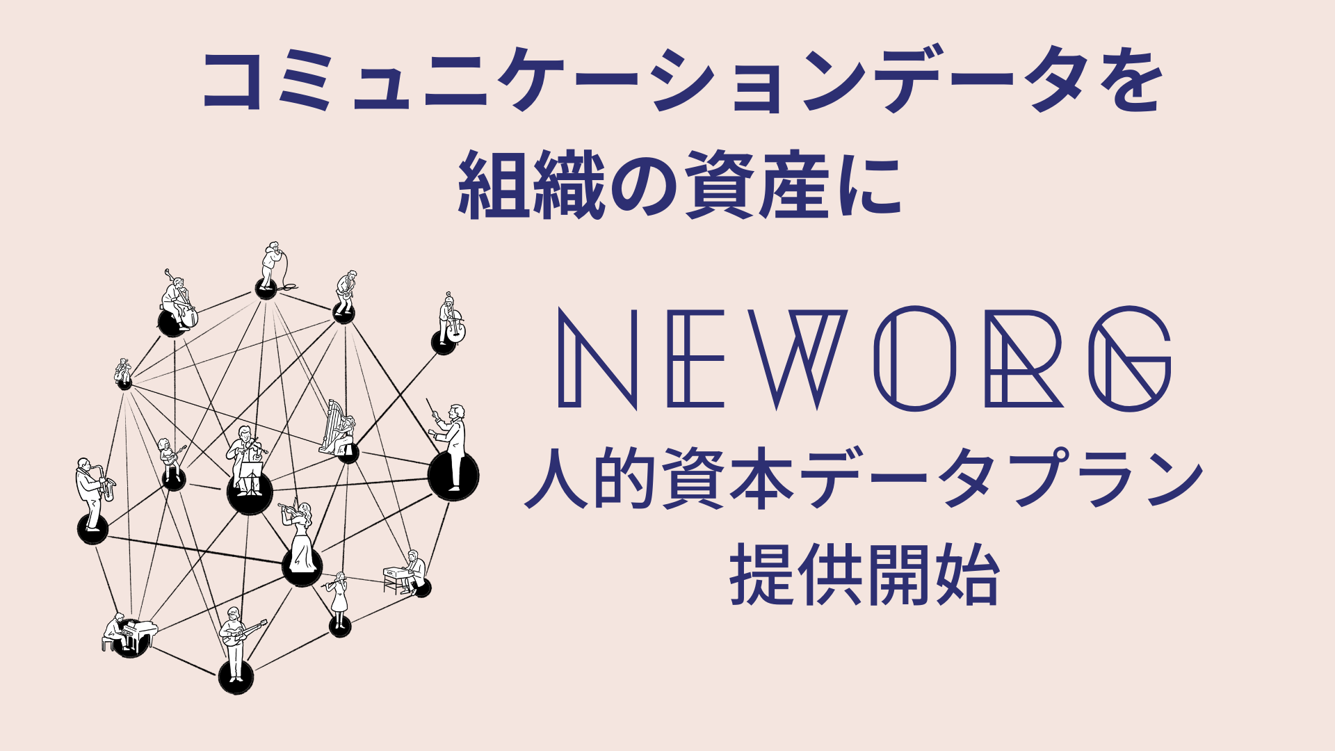 当社は、Slackのコミュニケーションデータとチームのエンゲージメント情報を活用し、組織マネジメントを支援するサービス「NEWORG (ニューオーグ)」の提供を通じ、チャットデータと組織情報を組み合わせ、「離職防止」や「オンボード」などの組織課題を、データとコミュニケーション改善から実施してきました。